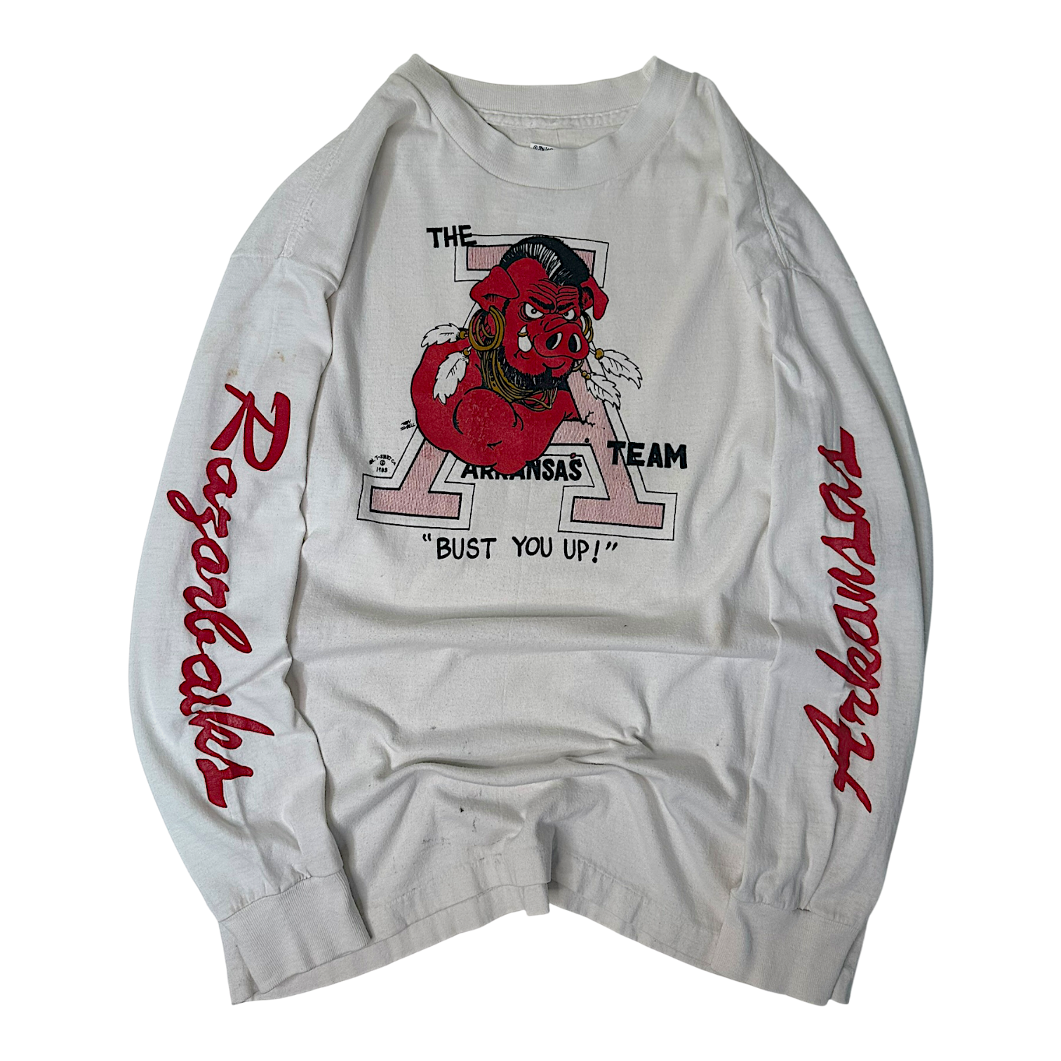 SHOP ALL. › 80s ARKANSAS RAZORBACK LONGSLEEVE TEE (M) Image 1 of 1 80s ARKANSAS RAZORBACK LONGSLEEVE TEE (M) $224.99 18”x24” Add To Cart Added! 18”x24”