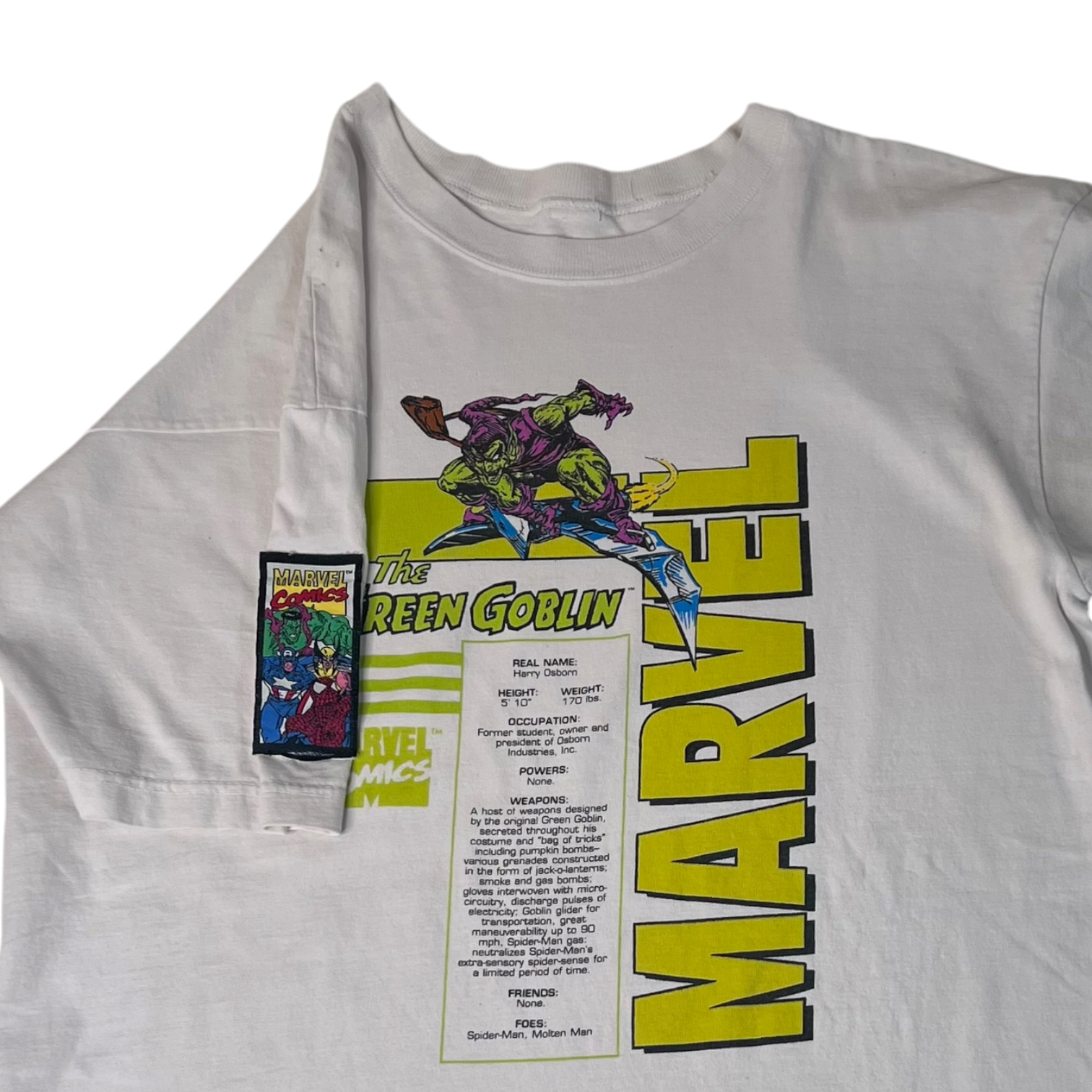 SHOP ALL. › 90s/00s Marvel Green Goblin Comic tee (L/XL) Image 1 of 2 Image 2 of 2 90s/00s Marvel Green Goblin Comic tee (L/XL) $64.99 22.5”x29” Add To Cart Added! 22.5”x29”